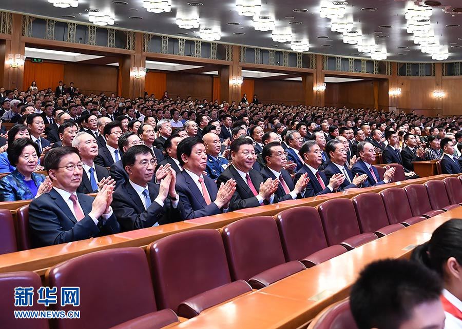 9月29日,慶祝中華人民共和國成立70周年大型文藝晚會《奮斗吧 中華兒女》在北京人民大會堂舉行。習(xí)近平、李克強、栗戰(zhàn)書、汪洋、趙樂際、韓正、王岐山等同4000多名觀眾一起觀看演出。 新華社記者 謝環(huán)馳 攝